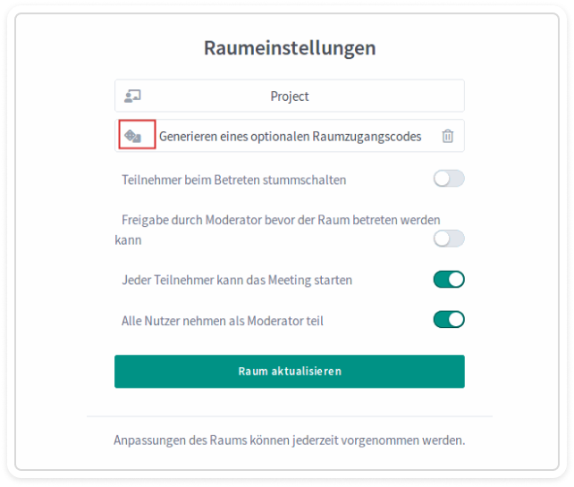 In the room settings, you can structure the meeting in advance. You can determine which options are available to participants.