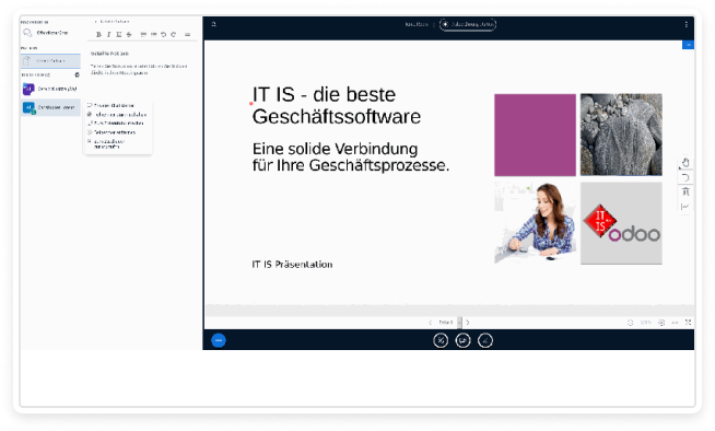 In the conference, there is the option to share documents, upload presentations, and, of course, share your screen with the participants.